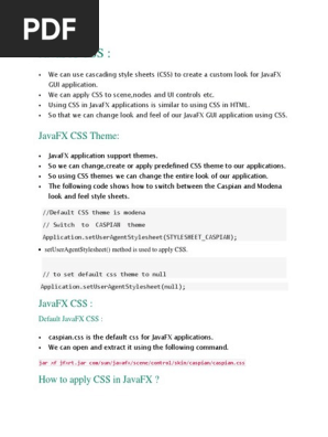Css 2 1 and css 3 help cheat sheet by smashing magazine the css 2 1 help sheet covers syntax font text margins padding border position background list media types and keywords. Click the link below to download our one page intellij cheat sheet pdf. The javafx 1 2 release features a new library of skinnable controls written in pure javafx. It is built on java technology so it is interoperable with existing java libraries and is designed to be portable across different embedded devices including mobile phones and set top boxes.